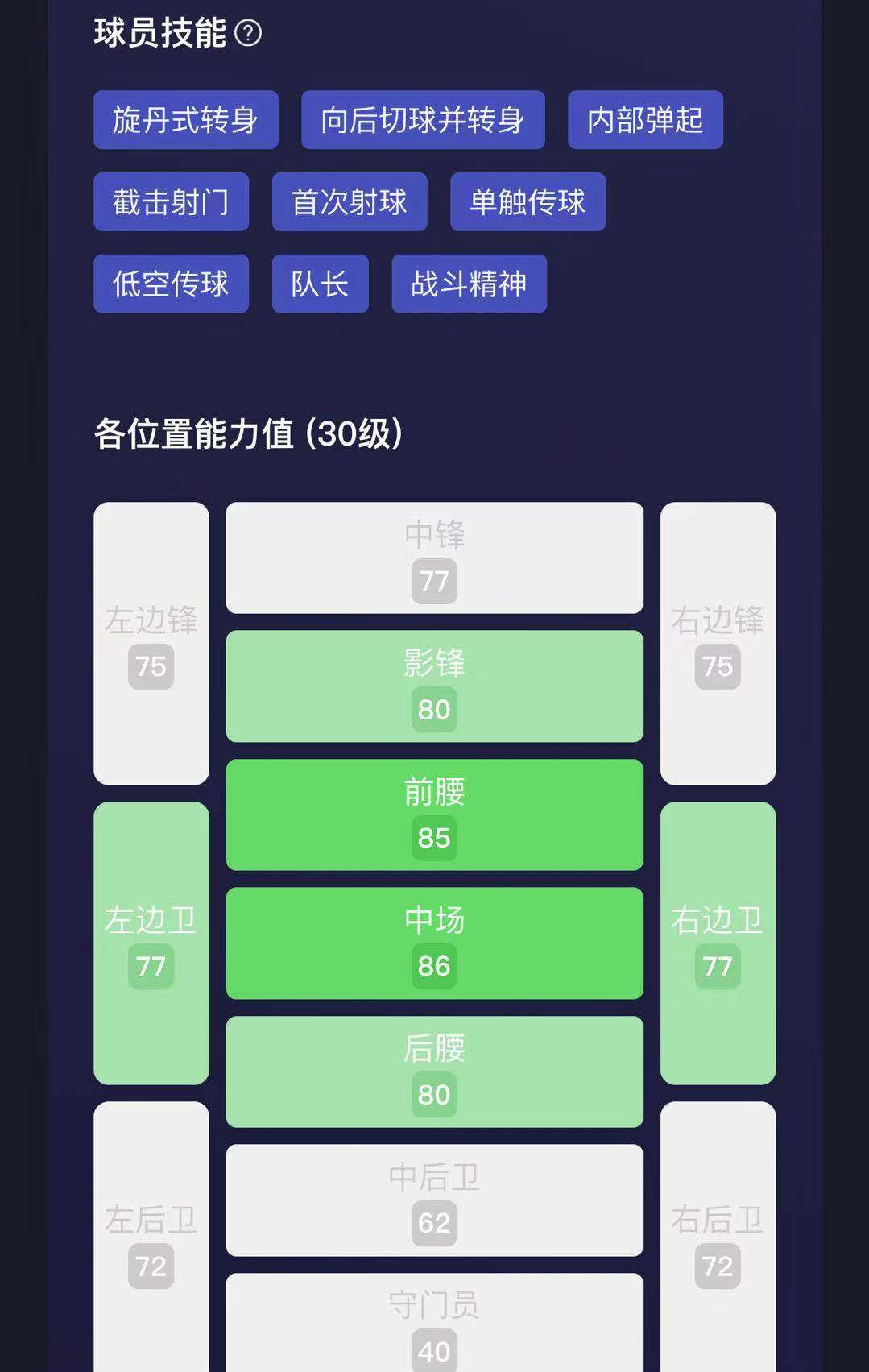 基础数据(30级评分:86)《实况足球》里面哈姆西克有86的评分,这对于31岁的老将来说是相当不错的水平了。但隐患是哈姆西克的伤病历史和近期在那不勒斯的地位问题。目前来说《实况足球》还是黑卡球员,但以后可就真的难说了。不过哈姆西克当前版本还是不错的。
