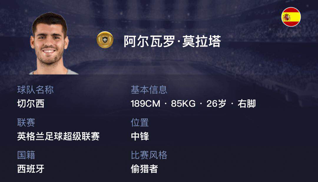 《实况足球》里面,有很多很好用的前锋,但有些前锋在一些比赛里面会有一些离谱的越位。不过说到越位,我们就必须提到一个人了,那就是我们的“越王勾践”,英超切尔西的莫拉塔,莫拉塔也是本赛季英超目前为止越位最多的球员,所以“越王”这个词也不是诋毁他了,而且莫拉塔目前深陷交易流言,就连《实况足球》里面的评分也已经减到了金卡,那么到底莫拉塔在《实况足球》里面还好不好用呢?今天就让我们来一起看一下吧。