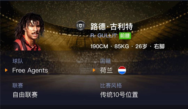 《实况足球》手游里面记录的是26岁的古利特,所以说《实况足球》手游里的古利特是相当有上升空间的。建议玩家抽到古利特之后想都不要想,直接高突就完事了!其实古利特的模型在《实况足球》手游里面也是相当不错的,这也是为什么古利特在《实况足球》手游的天梯胜率如此之高!