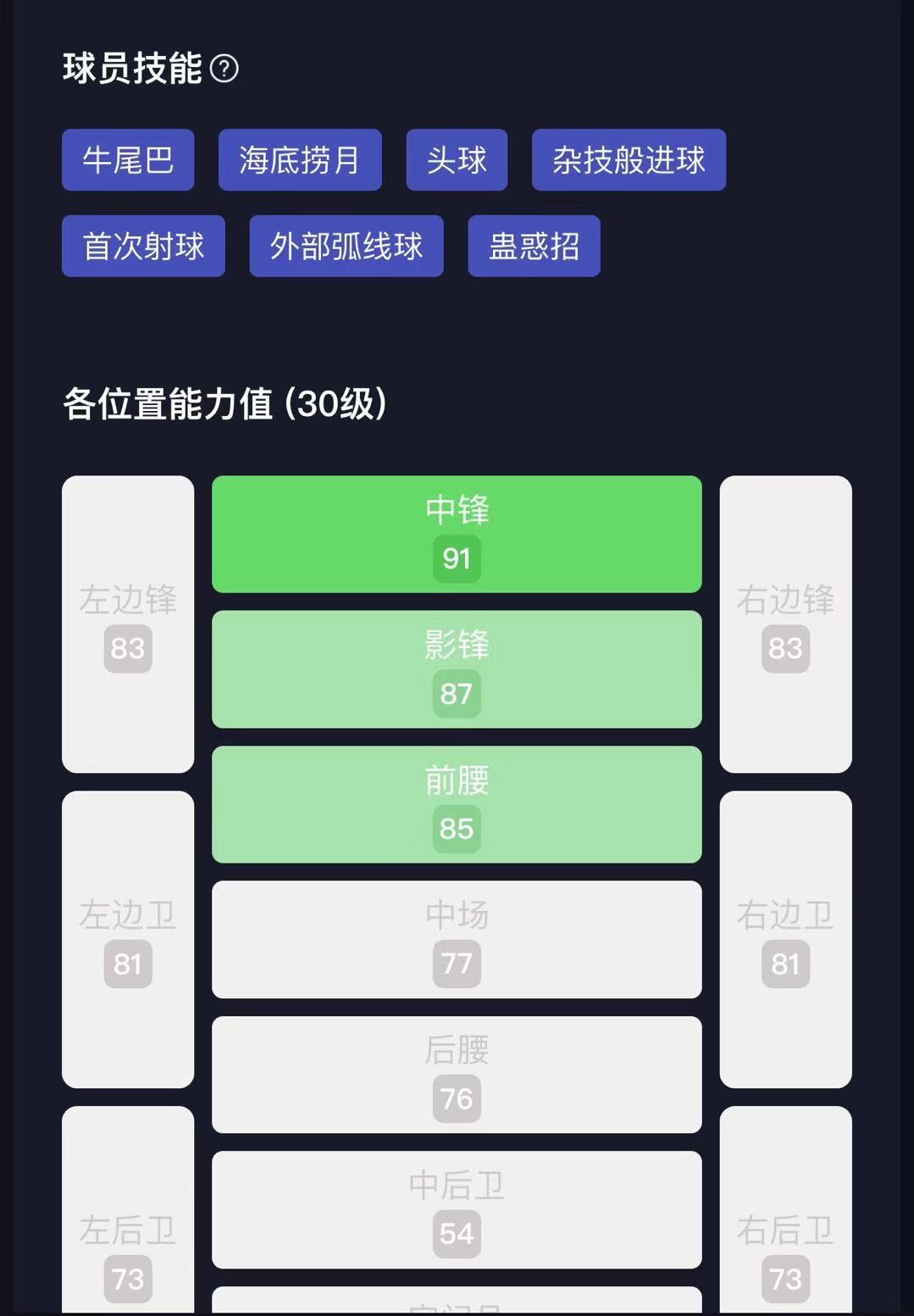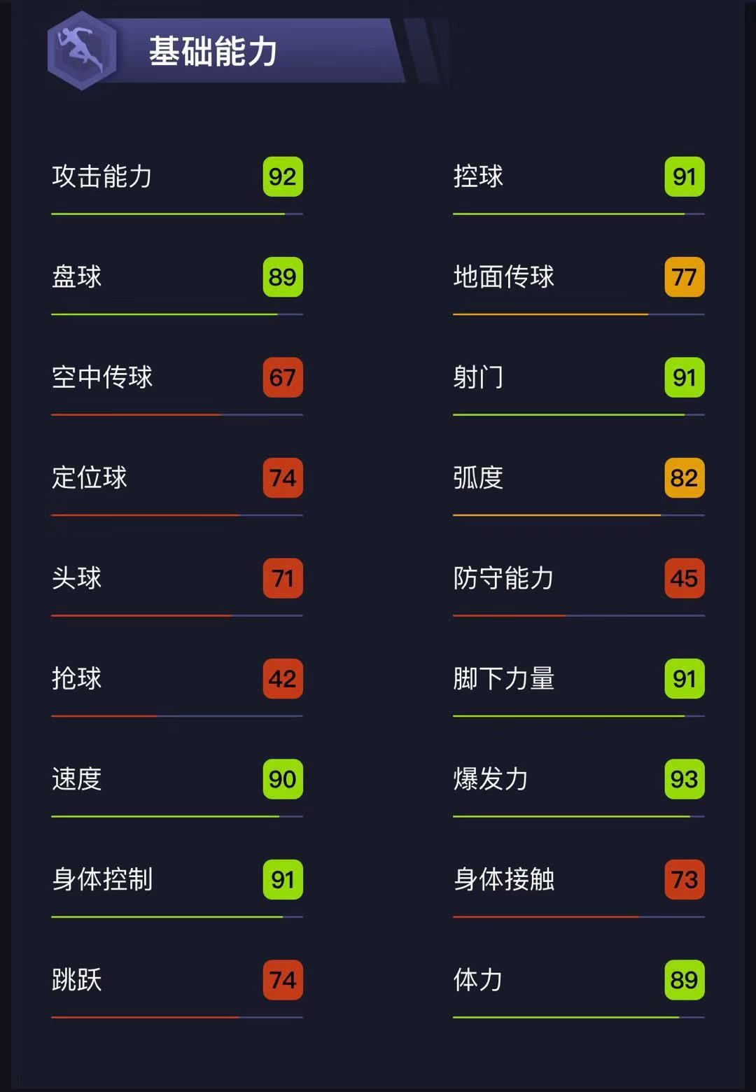 基础数值(30级评分:91)《实况足球》里面记录的是罗马里奥28岁时候的数据,这也就意味着《实况足球》里面的罗马里奥还是有一定的上升空间的。但实际上,任何一个满级90以上的球员都绝对是值得高突的。虽然都说传奇卡难用,但实际上罗马里奥还是在《实况足球》里面相对来说比较好用的球员。