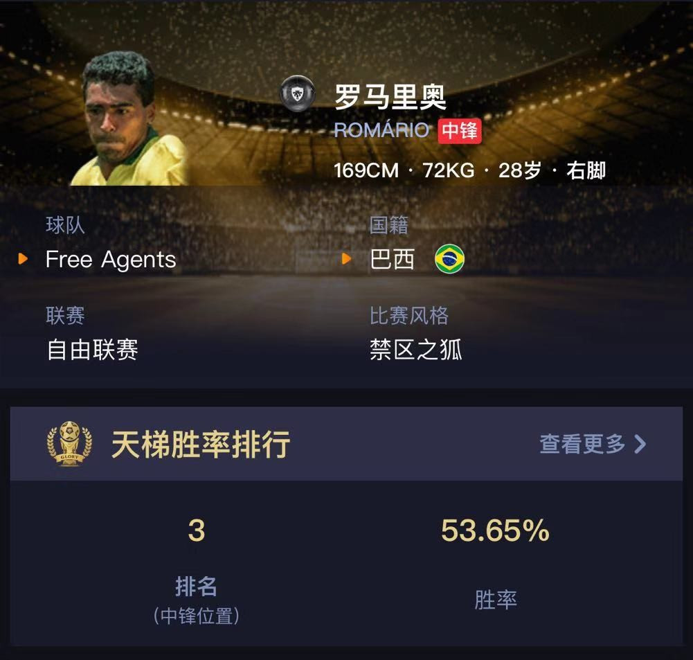 《实况足球》里面关于最强中锋这个话题一直很有争议,很多人觉得奥巴梅杨基本上就已经算是最强中锋了。但还有人觉得卢卡库才是最强中锋,毕竟身体强壮。但实际上在《实况足球》里面,每个中锋都有每个中锋的特点。今天小编就给大家介绍一个在《实况足球》中锋胜率榜单上排名前三的中锋。并且这个中锋还是一张传奇卡,他就是来自巴西的中锋——罗马里奥。
