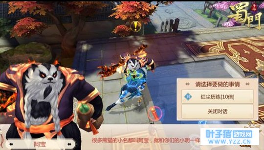 红尘历练 红尘历练是玩家最早接触的天书活动,它的完成方式也是最轻松的,玩家只需要在主城中的阿宝处接取任务就可以自动参与该活动,通过拜访不同的NPC,玩家就可以轻松获取经验值,每天共可以进行六轮,值得注意的是,每天的前两次红尘历练活动可是会提供十倍经验奖励的哦!