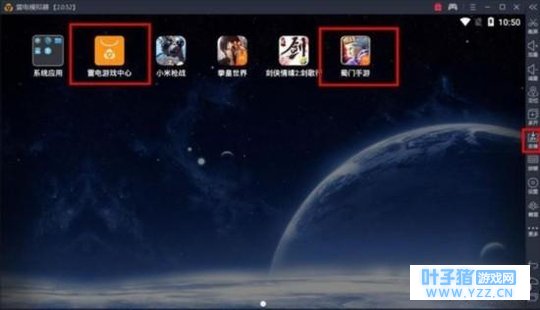 二、打开雷电安卓模拟器,在雷电游戏中心搜索“蜀门手游”进行下载,或通过模拟器右侧栏目里面的APK安装功能打开下载到电脑上的游戏安装包。