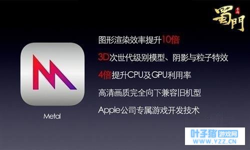 《蜀门手游》独创开放式社交体验,点对点自由交易玩法给予玩家最大交易自由,在副本中投点到不属于自己的物品时也能与队友交换,增强了玩家间的互动交流,提升玩家的游戏体验。 【ios黑科技,怕吗?】 目前,《蜀门手游》在ios上采用了最新苹果相关技术,如Unity3D + Metal双技术,在Metal技术的助力下,图形渲染效率提升10倍,CPU及GPU利用率提升4倍;高效率3D动画技术,大大提高3D动画播放效率,可实现千人同屏渲染;以及SpriteKit、SceneKit、Swift等多种最新苹果相关技术,标志着手游步入次时代,力求给玩家最好的游戏体验。