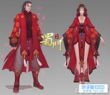 [霸业谈笑中,红颜舞苍穹!“至尊红颜”时装惊现!] 谁许我嫁衣红霞,后共我青丝白发。这款名为“至尊红颜”的时装,红色长袍风华绝代,上绣金丝喜字,暗花祥云为边,尤其雍容华贵。红色是中国传统的喜庆颜色,由此不难想象这套时装可能会与节日抑或是婚礼之类的活动有关,身上华贵的刺绣与考究的佩饰将会使穿着者变成蜀门手游世界一道靓丽的风景,而其高贵的气质也将藉由时装进一步彰显。女装则颇有母仪天下之感,端庄肃穆,别致的发型和与其相映的发饰考据自宫廷样式,而衣领与上衣设计略有汉唐古风,设计师就连小腿的细节也没有放过,特地在上面描绘了精致的花纹,使得时装整体的水平提高了一个档次。