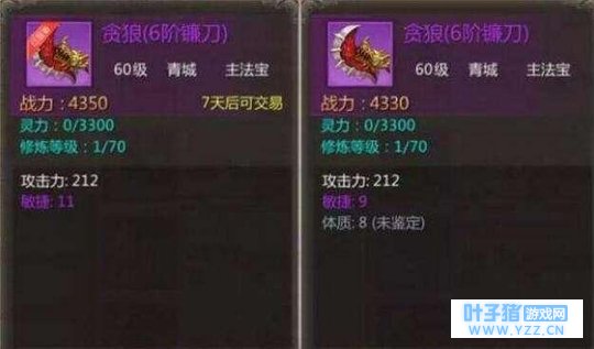 也许你以前并没有注意到这些细节,只知道同样的装备有的卖的贵,有的便宜,却并不知道为什么。 那么今天小编就以青城为例为新司机们来揭秘这一块的内容! 1主/副法宝 从下图就可以看出,单属性的属性值肯定会比双属性的单个属性值要高,一般来说,大部分老司机们都会偏向选择双属性,也就是敏捷+体质,毕竟双属性的敏捷也就比单属性低了2,但是双属性还会有体质,相对来讲,双属性的会更好一点,这也是双属性卖的贵的原因。