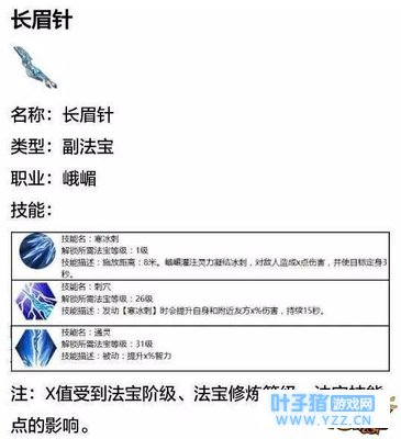 长眉针: 建议不使用,相比提高的暴击率还是其他法宝提供的生存加成更为有效。
