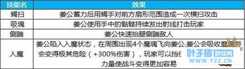 伊红樱是最考验硬件也最灵活的一个boss,打这个boss最重要的一点就是要移动!她的冰手会朝着你不断移动,若是在冰手伸出之前你没有离开红圈范围,你会被瞬间冻结无法动弹,不能移动也不能释放技能,这是比较麻烦的事情。而且boss会一直释放这个技能,因此你需要一直不停的移动。 比较好的应对方式是:若还有移动的空间,那么就疯狂走位,也可以故意进入红圈中,诱导冰手技能开始释放,一旦发现红圈停止,冰手即将要出来的时候,立即离开红圈,那么这个红圈就会被使用消失掉。 3、入魔姜公 原为共工后人,在天化村与玩家结缘,指点玩家修行,与玩家亦师亦友共同解决了天化村的危机,后被八魔掳走,困于离天峰受炼魂之苦,获救后已然神智不清一心报仇,追至魔宫反而被魔气乘虚而入,最终走火入魔,在魔宫深处等待解脱。 入魔的姜公整个手臂化为毒蝎能发动强力的横扫攻击,手持的头骨来自某个怨念极深的邪魔,能发动强大的诅咒力量,偶尔还会爆发出体内的魔气,如果任其越陷越深会使其变得非常狂暴。
