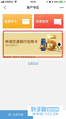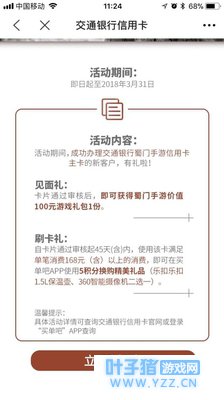 持卡人获赠的游戏礼包奖励需在有效期内使用,有效期为兑换码发送之日起的60天(含)。如持卡人未在有效期内使用兑换码领取礼包,则视为其自动放弃该奖励,且奖励自动作废。如符合获赠条件的持卡人于活动期间内申请销卡,交通银行有权取消或扣回该 持卡人的获赠奖励。 3、办卡活动 除了游戏礼包外,办了了交行蜀门手游联名信用卡的玩家还可以参与“5积分换购精美礼品”活动。 1)5积分换购活动