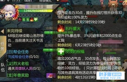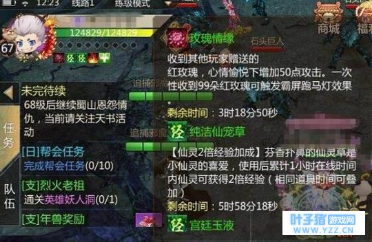 必带BUFF汇总 1五行星火 提高3%暴击率、3%闪避率和2000点生命上限。 2火力全开 3十年蟠桃 提升30点攻击力、200点气血、100点防御、50点全系抗性、持续15天,效果持续期间不能持续使用。 4宫廷玉液 提升30点攻击力、提升在线打怪所获得30%经验和100%灵力,持续15天,经验灵力效果可以和其他道具效果叠加,效果持续期间不能持续使用 5清身咒 使用后获得30分钟清身咒状态,期间击杀玩家将触发变身诅咒效果(持续15秒),效果期间击杀的所有玩家将变身为小鹿且30秒内无法复活,触发此效果后清身咒状态消失。 6护身符 携带在身上,可自动抵消一次变身诅咒类效果。 7兰花锦簇 赠送时可自定义留言,必定触发全服霸屏绚丽特效,同时增加对方大量人气值9999点、80点攻击及周身花瓣特效(持续83小时) 8红玫瑰 可赠送给其他玩家增加10点人气值、50点攻击及周身玫瑰花瓣特效(持续5分钟,时间可叠加)。一次性赠送99朵,可进行自定义留言,并触发玫瑰跑马灯效果。 9淡淡的祝福 增加200点气血,增加30点攻击,每分钟增加经验、灵力,持续5小时。 10狂暴丹 使用后在50级以上地图攻击玩家不会增加邪恶值,但被击杀后收到天谴令相同的惩罚,持续30分钟。 11少侠的祝福 使用后可提升1000点生命、50点体质、50点攻击、80点暴击,并获得蝶恋花外观特效,效果持续3天。 12纯洁仙灵草 使用后累计1小时在线时间内仙灵可获得2倍经验(相同道具时间可叠加,每天可使用6个) 如果带上以上全部BUFF,你将可以增加: 3%暴击率、80点暴击3%闪避率、3400点气血、50点体质、270点攻击力、100点防御、50点全系抗性、30%经验、100%灵力、 可以将玩家击杀30秒内无法复活,且不受他人诅咒 仙灵可以获得2倍经验加快升级 城战时候还可额外获得100点攻击、20000血量、80暴击、80点致命 基本上也就是这样了,是不是突然觉得这些buff无比的好用!打架的底气都多了很多!同等级同装备同锻造等等一切都一样的情况下,靠这些BUFF绝对可以秒杀对方,就算是战力相差上一些,也是有一战之力啊!