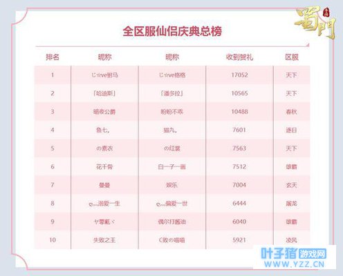 导语:爱无止禁,钻赏佳人!历时近一个月的《蜀门手游》首届全民仙侣庆典已于2月底甜蜜收官,期间全区全服数以万计的玩家们在三生湖畔浪漫约会,在月老面前许下相伴的誓言,在龙凤殿堂举办了盛大的庆典,各区服人气仙侣玩家名单正式出炉,同时最高人气的钻戒得主也已揭晓,让我们一起去感受下仙侣玩家间的甜蜜吧。
