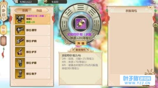 仙道书八卦 套装聚百法 玩家可以用太极符(声望商店获取)等道具进行不同的八卦印的制作。制作完成后,就可以将不同的八卦印装备在不同的装备和首饰部位。