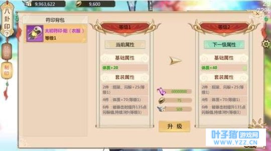 根据八卦印套装的不同,其提供的套装属性也是不尽相同。我们可以根据我们所面对的不同战斗需求来对八卦印套装进行各种各样的搭配。 江湖中,风起云涌,为了应对瞬息万变的江湖境况,我们需要使用灵力值、道行值以及绑银对八卦印进行不断的升级强化。只有不断地进步,在这个江湖中称王,值得注意的是,只有我们收集齐一套八卦印并将其贴在装备上之后才能进行升级哦。
