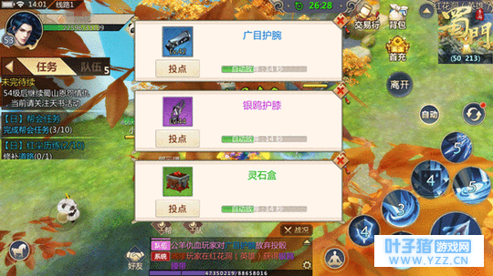 装配投点合理分配 对于临时组起的野队,装备的合理分配就成了一个大问题,一言不合可能就要结成仇家,没准还会演变成帮派间的斗争。在《蜀门手游》中,玩家可以通过投点的方式,凭借随机生成的点数,点数大者获得装备,一切全靠运气,不过《蜀门手游》副本产出的都是不绑定的装备,且参与副本的玩家可以投点非本职业的装备,这个设定是否会在后期掉落金色装备的英雄副本中激起一层浪就不得而知了,在组队前就协议好装备的分配或是组一个固定队伍或许是一个不错的解放方案。