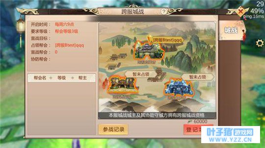本服城战结束后,就可以进行跨服城战的报名,与本服城战相同,跨服城战报名时也需要消耗60000帮会建设资金。