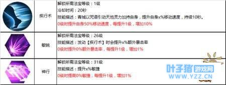 对于使用匕首的青城玩家,我推荐大家首先加满毒之劫和毒之怒来点满暴击伤害和暴击率,随后点满重斩来将爆发伤害最大化,最后可以考虑点满毒刺来提高追杀能力,或者点满失魂来提高控制能力。 副法宝: 太乙靴: