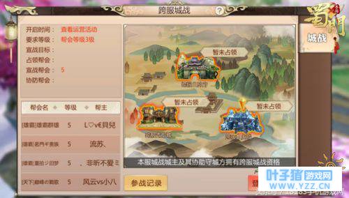 经过了上周六本服的攻城之战,顺利进入今晚争夺跨服攻城的帮会已经出炉。各家帮会已经选定跨服攻打的城池,当然除了城主帮会可参与今晚的跨服攻城之外,各个城主帮会的同盟帮会一样拥有跨服夺城资格。而且在今晚的跨服城战开启之前,一旦城主帮会的同盟帮会名单有所变动,则其跨服城战参与资格会随之变动,若同盟关系取消,则跨服城战资格亦被取消。