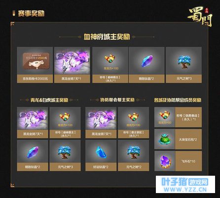 热血交战,胜利绝非偶然!《蜀门手游》不仅为最终拿下跨服血神府的帮会准备了丰厚的奖励,除了价值2000元的京东卡外,更有城主限定双人坐骑、永久珍稀称号“巅峰霸主”等好礼。而所有为这场胜利付出过努力的玩家,那就是帮助协防的帮会及其帮会成员都有可以获得“骁勇善战”永久称号!