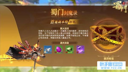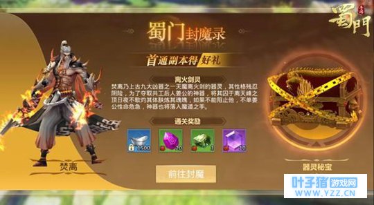 【妖魔乱世首通得礼】 《蜀门手游》封魔录系统是对玩家首次通关游戏副本进行奖励的系统,既是鼓励玩家挑战更难的副本,又是为玩家提供强化自身实力的道具。当玩家达到31级之时,游戏主界面将新增封魔录系统,封魔录系统的初始副本即31级的离天峰副本,点击进入以后,可以看到关底BOSS焚离的详细介绍与通关奖励。玩家只要首次通关离天峰副本即可获得相应的通关奖励。