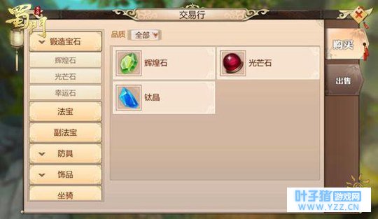 找到你心仪的物品之后,点击【购买】心仪的物品就到手啦 ~! 出售 在左边找到出售的图标,点击就可以切换到出售界面啦。中间展示的是正在出售中的物品,右边是背包内可以出售的物品。