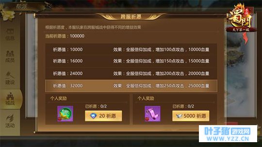 【众志成城,全民祈愿!全服信仰,战力加成!】 《蜀门手游》首届公会争霸战将启,燃情夏日的首场跨服城战则会在6月25日真正打响!为了点燃全服玩家的参与激情,共襄这场跨服的盛会,在本次跨服城战中,全新增加玩家“祈愿”玩法,集合全服玩家祈福心愿的信仰之力,注入到跨服城战的战场中,让整个赛事更加的热血激荡!