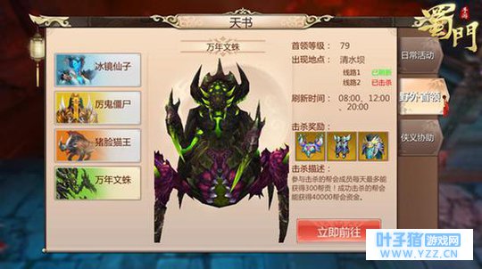 而监狱的最深处,就是全新的世界BOSS——“万年文蛛”,这只暴戾恣睢的剧毒魔蛛正张开它的血盆大口、挥舞着利爪等着误入此地的蜀仙盟弟子,若想惩治它,请有实力的蜀友们结伴前往!击杀即可获得全新等级的金色防具!除此之外,万年文蛛所在之处,竟降下六星仙珠,若是孤身前往的蜀友,在采摘时记得不要惊动魔蛛哦!