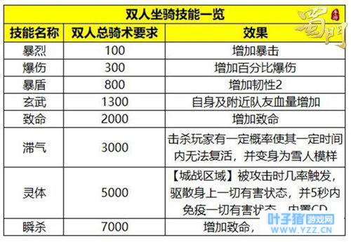 双人坐骑的天赋技能系统种类繁多,而随着双人骑术值的提升,玩家也能逐步解锁更多可供提升的双人坐骑技能,这些技能无一不是对玩家的属性或是团队作战有着巨大的提升,玩家可以通过修炼来获得更多的天赋点投入精进双人坐骑技能,而随着技能等级的精进,技能的效果也会逐步增强。不过需要注意的是在前期天赋点紧缺的情况下,玩家需根据自身需求多多考虑天赋点的投入!