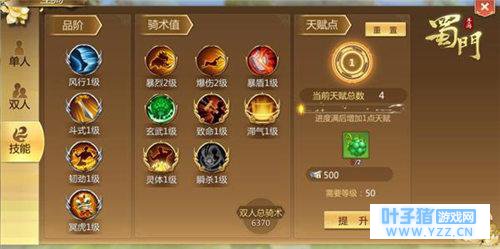 升级赚钱两不误《蜀门手游》双人坐骑天赋养成攻略
