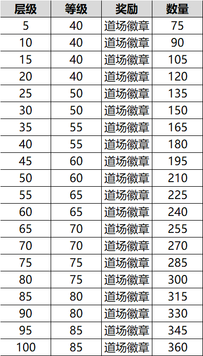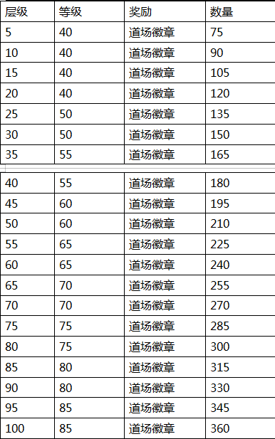 秘宝层奖励 秘宝层徽章奖励 驯兽师们心动不如行动,发起对百人道场的挑战吧! |