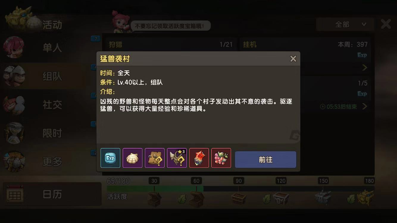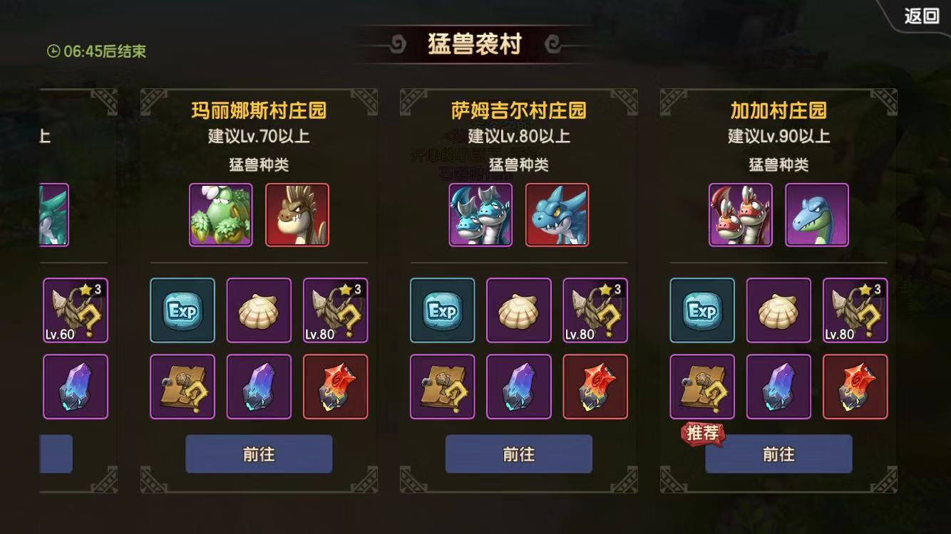 《石器时代M》中副本玩法特别多,但无论是前期成长还是后期资源需要,猛兽袭村都是每日必选日常活动,不容错过! ? ? 1、参与规则 玩家角色等级达到40级后,开启猛兽袭村的玩法,玩家可以通过单人或多人进行挑战,因为不同等级的猛兽挑战难度不同,高等级村庄的猛兽难度更高,建议组队挑战,胜率更高。 ? ? 猛兽袭村活动玩家每天可挑战的次数为5次,次数重置时间在每天上午6:00;如果当天已经挑战完5次,再继续挑战,只可以获得徽章奖励。 2、战斗玩法 猛兽袭村的副本玩法一共分为3种,分别为攻坚战、防守战和遭遇战。具体如下: ①攻坚战: ? ? ※ 主怪为雷龙系怪物,大部分怪物的属性和技能偏防御性质的; ※ 如果玩家在 3 回合内成功消灭主怪,则后续均为普通怪; ※ 如果玩家在 3 回合内未能成功消灭主怪,第 4 回合开始主怪会召唤 3 只精英怪前来助战难。 ②防守战: ? ? ※ 主怪为暴龙系怪物,大部分怪物的属性和技能偏进攻; ※ 3 回合后,如果玩家还有存活的成员,主怪会逃跑; ※ 若能在前3 回合内消灭所有怪物的话,也能获得胜利。 ③遭遇战: ? ? ※ 主怪为随机其他怪物,所有怪物的属性和技能比较均衡; ※ 遭遇战为普通的战斗类型,以全灭对方为战斗目标。 3、奖励介绍 玩家每天参与猛兽袭村的活动中,除了获得经验、贝壳等奖励以外;同时有概率掉落较为稀有的高品质装备(可交易),具体如下: 注:最终数据以游戏内数据为准。 |