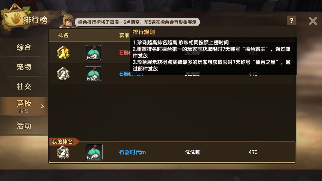 《石器时代M》的副本玩法很多,如果你喜欢PVP,和其他玩家互相竞技切磋,一同研究不一样的阵容,快意远古世界,那么游戏中的擂台你不能错过!分分钟挑战你的实力,提升你的策略思维。 ? ? 玩法概述 游戏中的擂台是玩家挑战pvp、相互切磋体验阵型的场所,在这里玩家在限定区域进行决斗,玩家在进入擂台会获得珍珠积分,当玩家战斗胜利会增加积分,积分可用于精彩对决的分阶显示,决斗过程不消耗忠诚值等。 ? ? 开启条件:玩家角色等级在60级以上; 活动界面:[活动]→[更多]→ [擂台]。 决斗流程 玩家到奇喀喀村找到擂台管理员NPC后,进入擂台的活动场景中,可以发起决斗的相关操作。 ? ? 发起决斗: 擂台的决斗有两种,一种是组队状态,一种是单人状态。 在单人/组队的状态下选择决斗的时候,系统会根据以下规则判定发起决斗信息: ①双方的积分是否高于200,高于200的双方将无法发起决斗; ②对方需要在战斗场景并且在线; ③玩家如果在战斗状态中将无法发起决斗。 ? ? 决斗确认 当一方的玩家发起决斗,另一方的玩家的可以选择接受或拒绝: ①当被决斗一方选择取消、关闭按钮或30秒无应答均视为拒绝决斗; ②当玩家接受决斗,根据双方状态并确认,进入擂台开始决斗; ? ? 胜负判定 ①决斗最大回合数为20回合; ②20回合内只要有一方全部阵亡则死斗结束,有剩余单位方胜利; ③20回合后则根据剩余单位数量>剩余血量来判断获胜方,若剩余血量也一样则随机一方胜利; ④撤退/队伍全部撤退算作直接失败; 3、决斗结算 当玩家战斗胜利后,将会获得相应的珍珠积分数;反之则减少。 ? ? 说明: ①每个玩家初始都会有500珍珠积分; ②低于1000积分的玩家积分不动,高于1000积分则每周回归为1000 ③战斗按照通用PVP结算胜负。 4、排行说明 根据玩家在擂台决斗获得的珍珠积分多少会有相应的排行榜,玩家可以通过点击右下角【三】找到【排行】。在[竞技]一栏选择[擂台]可以看到擂台的排名,排名为实时更新,每周一六点重置。 ? ? 具体说明如下: ①珍珠积分越高排名越高,珍珠积分相同的按照上榜时间排名; ②擂台在上周排名第一名的玩家可以在邮件里收到限时7天称号“擂台霸主”; ③上周擂台排行榜前5名,将在擂台场景中展示形象,玩家可以对擂台形象展示的玩家进行点赞、加好友操作,相同形象展示的每天只能点赞1次; ④获得点赞数最多的玩家会在形象展示刷新后,获得奖励邮件,包含限时7天称号“擂台之星”。 5、生死擂台 除了擂台,还有一种决斗名叫生死擂台。 ? ? 不同擂台的是,在生死擂台中,挑战者需要消耗钻石购买道具来向指定ID玩家下战书。通过组队或单人进行。 ? ? 目前下战书只能对玩家角色等级达60级以上的。如果对手已离线,将无法下战书;如果对手已被他人下战书,将无法应战。 ? ? 被挑战者在收到战书以后可以对此选择拒绝或应战。如果应战将进入生死决斗的对战,过程选择无法撤退。 ? ? 生死决斗的胜负判断内容如下: ①最大回合数为20回合; ②20回合内只要有一方全部阵亡则死斗结束,有剩余单位方胜利 ; ③20回合后则根据剩余单位数量>剩余血量来判断获胜方,若剩余血量也一样则随机一方胜利;④战斗双方不允许撤退; ⑤当失败的一方所有角色(不含宠物)减少当前等级最大经验的10%,最多扣成0,不会降级。 |
