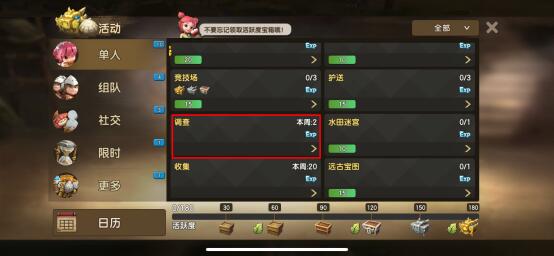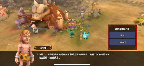 化身大侦探,一起去调查失踪宠物的秘密!《石器时代M》调查玩法详解 可怕的机械信徒为了制造更多的机械生物,在每个村庄都囚禁了许多宠物宝宝。驯兽师们不能袖手旁观,前往[调查],或许能发现一些线索! 点击前往调查,找到NPC塔可登,他会告诉你最近宠物失踪事件,前往各个村庄询问村长,他会给你对应的线索。 领取条件 驯兽师等级达到Lv.65以上后可以通过活动>>单人>>调查,与NPC进行对话并领取任务,每周可领取3次任务!完成任务后可获得任务奖励,包括经验、石币、及随机获得宠物求救信等。 领取规则 玩家等级到达65级,每周可在npc处接取调查任务,每周可完成3次。 任务为对话任务,在与npc对话后,完成任务,可获得任务奖励,并有40%的概率获得宠物解救信。 使用宠物求救信,可以随机获得一个对应宠物系别的紧急解救任务,战斗较为特殊,需要杀死除了敌方被封印宠物以外的所有人,且被封印的宠物不能死亡。 紧急解救任务完成有概率获得符文改造石、技能罐头。 任务地点 npc会告知随机告知某个地方的宠物失踪(地点分别为卡坦村幼年翼龙、萨姆吉尔村幼年九尾、福尔达村幼年暴龙),并要求玩家前往求证,同时玩家身上新增1个调查任务。 根据玩家等级,可随到的种类逐渐开放,65级,只能随机到调查幼年九尾系,85级,开放调查幼年暴龙,75级,开放调查幼年翼龙,80级,开放调查韦帕斯系。 宠物求解信 一共三种系别的宠物可以解救: 65级 开启解救幼年九尾系、 85级 开启解救幼年暴龙系、 75级 开启解救幼年翼龙系、 80级 开启解救韦帕斯系 使用求救信,获得解救任务,刷出的任务明雷怪位置固定 点击解救宠物后会加入战斗! 战斗要点 战斗中不能杀死对面的待解救宠物,即处于被封印状态的宠物,若不小心杀死对面的待解救宠物,则立刻判定挑战失败; 待解救宠物不会攻击我方,也不会做任何行动,处于被封印状态; 如果不能在5回合内救出宠物,敌方会开始攻击待解救宠物; 只有打败除待解救宠物外的所有敌人,等待解救宠物自动逃跑,才能完成挑战; 若玩家在战斗中离线,则系统代替玩家自动战斗,若自动战斗中被击败、杀死待解救宠物、超过最大回合20回,直接判断战斗失败,重新登录保留任务,让玩家反复挑战。 奖励内容 完成调查后可获得:经验、石币、随机求救信、随机魂石、随机宠物列传道具,其中宠物求解信、宠物魂石、宠物列传为随机掉落奖励! 完成解救后会获得对应的幼年宠物一只及对应的系别的宠物魂石*3,此为100%获得!