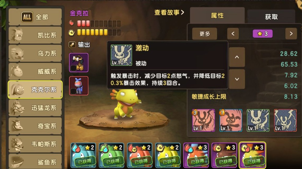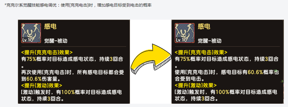 59版本已经更新了2周,在新版本的百花齐放你是否适应,诸多的冷门宠物崛起,克克尔这个村口满地是的小兔子,现在一越成为了集输出控制于一手的强势角色!今天带兄弟们逐步了解这个不起眼小兔子的恐怖之处。 新旧对比 没接触过兔子的玩家可能会对这个技能叙述比较迷茫,对于技能也理解不到位! 锦上添花的1技能,给手动PK的肉兔子更多选择,同时也可以通过暴击触发感电,1技能的单体概率驱散极具功能性,虽然不是常用选择,但1技能给了兔子克制巨龟等BUF宠的打击点,属实是麻雀虽小五脏俱全。 可以令敌人感电的技能,3费技能,单体爆发,增加暴击概率,同时对被克克尔克制的属性(根据兔子属性变化)造成额外伤害。 针对主流属性的克制可以考虑地属性兔子(简单易得,直接抓2星,降敌人防御) 比较实用可以考虑火属性兔子(降低敌人攻击力,几乎克制所有技能) 高属性代表是捕兽夹的风属性兔子(降低敌人暴击效果,对穿山甲,乌龟比较无力,但对其他治疗和输出都有一定克制作用,敌人暴击概率越高克制效果越明显) 只要触发暴击即可降低敌人2点怒气,并且根据不同克克尔的属性降低敌人属性(火属性攻击,水属性治疗效果,风属性暴击效果,地属性防御),同时让敌人感电。 对比旧版觉醒技能,更新后的觉醒技能,在感电触发概率不变的基础上,感电的必定触发伤害变成了60%概率触发,很多人觉得这是削弱,其实不然,虽然概率下降了不是必定触发,但伤害一越从60.6%提升到了100%,40%的伤害提升让克克尔从传统的爆发伤害流改为了站场肉兔子流更为搭配新被动。(更持久的战场,更多的触发机会,更多感电机会。) 培养方向的改变 说了那么多可能还是有玩家一头雾水,那么我来给大家算一笔账。增加了40%的伤害,但触发是高概率触发,但不是必定触发,无论这个触发方式如何更改,我们都不要再打一刀流了,不要追求一下爆发秒杀敌人,虽然对克制属性小兔子的爆发力堪比人龙,但在对付非克制属性的敌人时,克克尔系是多面手,集降怒,爆发,DEBUFF,联动AOE,驱散(1费技能)于一体的功能性宠物。 一味的堆积爆发会让你无法长久站场,多给敌人上感电,多次触发感电的AOE,同时通过爆发对敌人控怒才是首选,试想你如果堆爆发秒敌人,浪费了感电BUF,浪费了敌人的DEBUF(降低能力)还浪费了降怒效果,如果喜欢秒杀,人龙等杀人触发特效的宠物更为适合。 综上所述,我们本篇要向大家推荐的玩法就是肉敏兔子。 肉兔子打法 (表情贱贱的火兔子,肉出装配合自己的降攻,相得益彰) 对方难以秒杀又会一直被兔子先手控制宠物。 以先手出手为核心理念,让兔子又肉又快,暴击后一定会降怒,会很克制靠必杀技吃饭的宠物(凯比 小暴龙 暴龙 等等),除了不克制熊系 鲨鱼系等靠普攻输出的敌人,几乎克制并且可以恶心游戏内所有其他宠物。 性格选择:灵敏,暴躁,休闲,勇猛。 个人更推荐灵敏和暴躁,后出手的兔子和先出手的兔子是2个概念,暴躁则可以在你没有土豪铭文的情况下保证兔子的控制效率。如果队内有回力标满敏配合灵敏兔子,对方恶心到家了。 训练点法:主生命副防御敏捷,因为你再快都快不过投石骑鸟的,而且第一回合兔子是摸不到后排的,没有控投石的意义。 建议敏段卡在敏投斧之前出手即可,出现红色攻击力不要多点,千万不要多点如果老出红的最多点1-2次,除非你有+15的闪避 生命扛暴符文等土豪配置,个人建议是不要点生命全部留给生存属性。 研究点法:生命生命百分比,敏捷敏捷百分比,防御防御百分比,攻击攻击百分比,暴击概率,反击概率,命中,闪避,状态抗性。 为什么不点暴击效果?虽然兔子几乎是每次都会暴击,但是我们不主训练攻击,所以暴击效果的提升微乎其微,不如点出抗性,闪避,更强的站场,只要你兔子不倒,对面就放不出大招技能。 符文选择:攻击暴击符文(技能首选二段攻击次选猛力、中毒/流血攻击) 抗暴生命符文(技能首选强命、清醒、灵敏,次选长寿) 闪避防御OR反击防御符文(技能首选坚甲、厚皮、铁壁、洁净,次选重生振作) 抗性敏捷符文(技能首选快速、精准,次选混乱) 符文属性优先级:生命 敏捷 暴击 闪避 命中 抗性 抗暴 兔子选择 我们用排除法来说,虽然是打持久战,但无论属性,还是功能性上来看,都不建议大家选择水属性的兔子,减治疗效果的针对面太过狭窄了。 那么接下来我们来看,地属性,火属性,风属性。 乍一眼之下,地属性的减防不错,但因为是2星初始,地兔子的属性比火兔子风兔子是有差距的。属于可以养,但是不建议投入太多果子资源的选择,获取成本低,可以买一个A初始白贝壳就可以玩一玩,减防百搭阵容可以帮助凯比小暴龙等AOE角色打出单点突破。 火属性兔子首推巧克洛尔,就是巧克力色的兔子,降攻应对面很广,基本对所有敌人都有克制作用,成长分布优秀,成长值在兔子里第二高,仅次于风属性,唯一缺点是目前水属性流行,被克制情况会比较多,但因为属性的55分布,并且有混风属性,所以对于天使凯比和帕兰等水地混宠物,是有一战之力的。 风属性兔子是捕兽夹出品,高成长,高敏捷,适合我们的打法需求,但考虑到入手难度,和暴击效果的降低不如攻击力来的实际,火兔子性价比更胜一筹。风兔子是最快极限情况下也最好用的兔子,有的话不妨养一养。 阵容搭配 首先兔子宠在人参战的情况下,更适合配合爪子,投石,棒子,回力标。非秒杀阵容,队伍有一定的