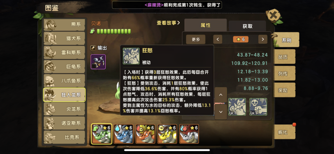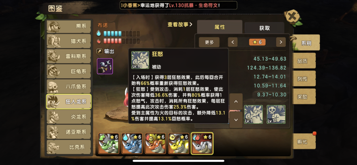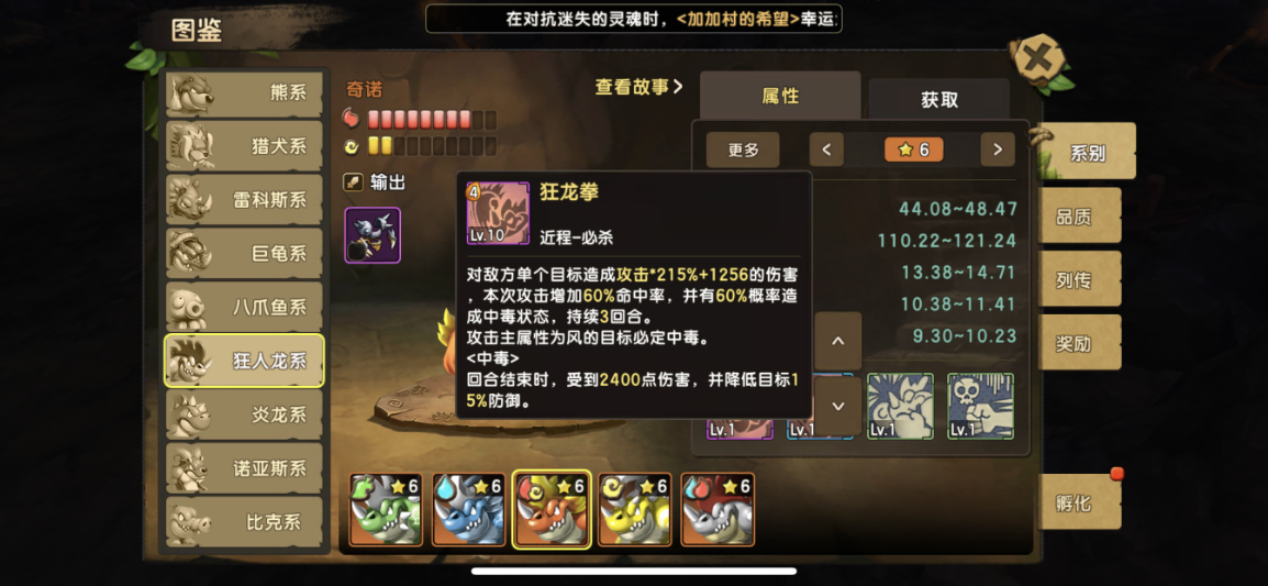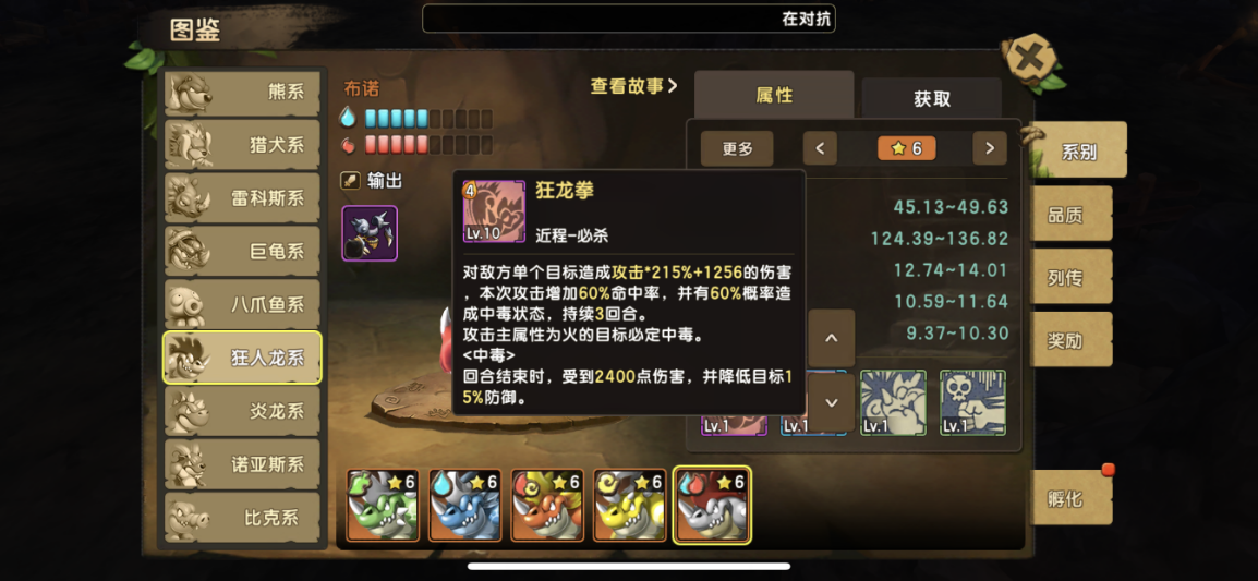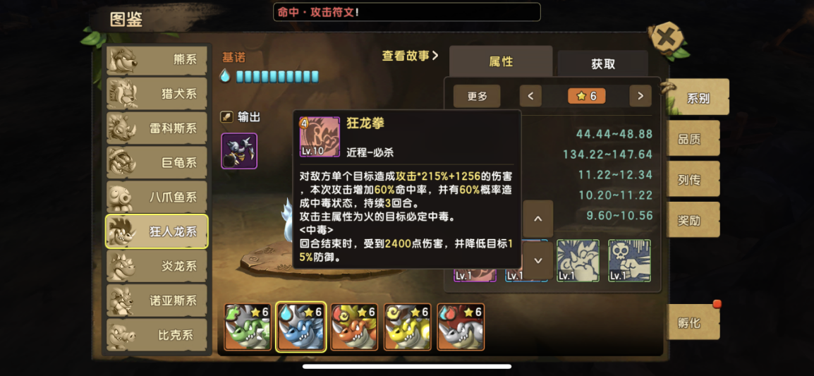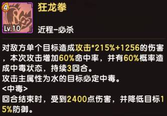 前话 终于迎来了全新130版本,融合宠,这里介绍的是,狂人龙系,都说人龙不强,现在狂人龙来了,人龙系进化版,狂人龙,炫酷凶狠的外观,锋利的一排牙齿,超强的技能,动不动就是秒杀,061版本的最爆炸输出,非狂人系莫属了。下面开始介绍技能 狂人龙系: 技能效果: 技能名称 效果示例 狂龙拳(近程-必杀) 狂人龙4怒大招,数据给出还是很给力,看着和普通人龙的伤害一样,并不,狂人龙的狂怒被动,让你增加75.9%的伤害 一击必杀(近程-主动) 个人觉得最好用的技能1怒,基本结合狂怒被动,一回合秒任何输出是不存在问题,数据表明和普通人龙一样,但是不一样,狂人龙是结合被动狂怒进行输出 狂怒(被动) 狂人龙的标志技能,当家被动,得此被动者得天下 ,3层狂怒BUFF结合输出技能,基本系秒谁就秒谁,每回合有66%概率获取狂怒效果,狂怒效果还能降低伤害,但是被攻击降低伤害后,会失去狂怒效果,失去狂怒效果的狂人龙就是普通人龙,此技能一定满级 毒爆(被动技能) 狂人龙比较普通的一个技能,可以说非常ji肋,不多介绍,可以不点满级,8级就可以 下面是各狂人龙的属性技能对比 地狂人龙:狂龙拳: 攻击主属性为水目标,100%中毒,中毒伤害回合结束2400 伤害, 狂怒:受到水目标的攻击,额外再降低13.1伤害并额外提高13.1回怒概率 水狂人龙:狂龙拳: 攻击主属性为火目标,100%中毒,中毒伤害回合结束2400 伤害, 狂怒:受到火目标的攻击,额外再降低13.1伤害并额外提高13.1回怒概率 火狂人龙:狂龙拳: 攻击主属性为风目标,100%中毒,中毒伤害回合结束2400 伤害, 狂怒:受到风目标的攻击,额外再降低13.1伤害并额外提高13.1回怒概率 风狂人龙:狂龙拳: 攻击主属性为地目标,100%中毒,中毒伤害回合结束2400 伤害, 狂怒:受到地目标的攻击,额外再降低13.1伤害并额外提高13.1回怒概率 特殊布诺狂人龙:狂龙拳: 攻击主属性为火目标,100%中毒,中毒伤害回合结束2400 伤害, 狂怒:受到火目标的攻击,额外再降低13.1伤害并额外提高13.1回怒概率 关于选择和技能分析, 很多人一定问,狂人龙在选择上该如何选择,关于上面的技能介绍,其实对狂人的影响并不是很大,狂人龙并不是依靠毒去输出,毒只是狂人龙多余赚到的东西,对于狂人龙选择,我们怎么选择呢, 速度越快越好,因为速度越快,你输出就越早,很多攻击宠物就是因为速度,还没出手基本被对面杀死,所以在选择上狂人龙上,我首选推荐,风属性狂人龙,火狂人龙,副选地狂人龙和水狂人龙,对于布诺这只特殊5水5火狂人龙并不强求,因为实在太难合出来,也是属性最高的狂人龙。 关于技能分析,狂人龙很明显是依靠狂怒去输出,失狂怒就跟普通人龙一样ji肋,毒对于狂人龙的作用并不是很大,在这里建议狂怒被动一定要提前满级,必须满级,狂怒被动,既可以当盾用,又可以当输出,3层狂怒25.3%*3伤害,只要速度快出手够快,用一怒技能基本上可以秒杀任何宠物,在没有狂怒BUFF的4怒技能同样秒杀熊系也是绰绰有余,狂人龙附带的2个技能都是增加命中,可谓是闪避宠物的天然克星了,在附带一个致死进阶符文的话,复活闪避宠只能偷偷哭了。 定位优点缺点 狂人龙系定位为 输出 优点:被动狂怒3层BUFF,见谁秒谁,还可以当做减伤盾用 缺点:输出宠通病,比较脆,不过狂怒也可以力补不足,狂怒可以被驱散 获取条件 130级以后 使用130级人龙系+130级毒蛙系+130级任意系,进行融合,有概率获得狂人龙系; 技巧:同属性的系别出同属性概率较高,宠物的成长越高,成功率越高,极品几率越高, 有几率融合出稀少特殊狂人龙,布诺5水5火, 培养: 性格选择勇猛,暴躁都可以 训练翻牌属性选择: 首选 一半攻击一半敏捷 研究 攻击 攻击% 生命 生命% 敏捷 敏捷% 暴击概率 暴击效果 命中 忽视反伤 图腾选择: 优先:敏捷-攻击图腾 敏捷优先 副选:攻击-暴击图腾 暴击-攻击图腾 符文选择: 必备 攻击暴击 首选 快攻 猛力 残暴 改造:攻击 暴击 进阶:首选致死,强化锋锐 敏捷抗性 首选 快速 突破 改造:攻击 暴击 进阶:强化突破 防御反击 首选复活 副选 坚甲 改造:攻击 忽视暴击 进阶:强化重生,谨慎 阵容推荐搭配: 有了狂人龙 ,替换自己的输出宠物即可,以下列出一套本版本最强搭配 肥龙+狂人龙+水微微+九尾+水小暴龙 肥龙+狂人龙+水微微+九尾+老虎 版本万金油阵容,结合微微的驱散,九尾的控制偷BUFF,在利用肥龙的治疗+净化,狂人龙和老虎小暴力等输出,非常完美的一套阵容,自由克制,此阵容适合用于单人斗技场和捕兽夹,为何一定要选择微微,因为越来越多的BUFF宠物,一定要有微微的驱散,包括狂人龙的狂怒也是可以被驱散的,所以微微是万能必备宠物, 肥龙是不停的回复+净化,依靠小暴力或者老虎和狂人龙的输出,非常推荐此套阵容,属性方面自由选择,狂人龙建议带上致死进阶符文,因为狂人龙带着狂怒出手,基本都是秒杀 打法: 记得保护好狂人龙的狂怒BUFF,建议肥龙带上忠犬,在单人斗技预防被九尾驱散偷走狂怒BUFF,在拥有狂怒BUFF的狂人龙可谓是 “有狂怒真的为所欲为 ” 全体总结 版本上最强输出,最强单体输出,最帅的外观,值得拥有的一只超强宠物,这只宠物建议还是玩风属性比较稳妥,敏捷更高,输出的空间更多。狂人龙的标志技能,当家被动,得此被动者得天下,3层狂怒BUFF结合输出技能,基本系秒谁就秒谁,建议一定提前满级狂怒 |