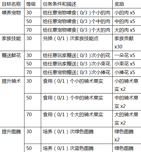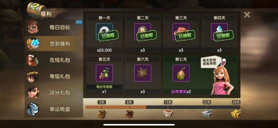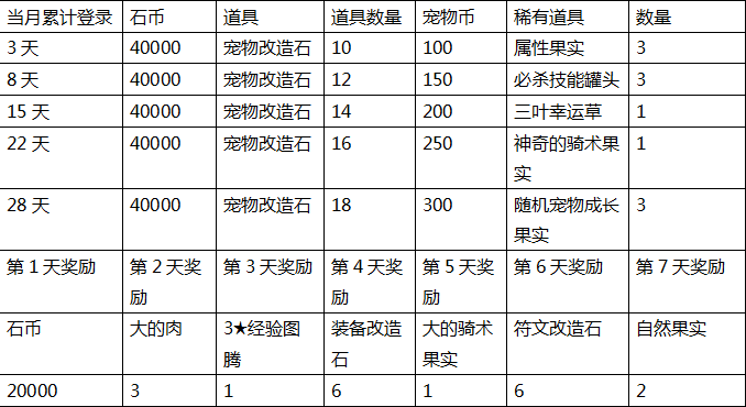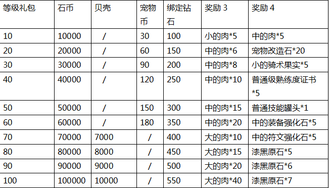 加入《石器时代M》开启驯兽师之旅,送你海量见面礼! 各位驯兽师,欢迎来到《石器时代M》的世界,从这里开始你将同无数的和你一样充满勇气敢于冒险的驯兽师一样,踏上了充满奇幻色彩的原始大陆! 作为你的伙伴,我将与你一起踏上这次的冒险之旅,旅途中充满挑战与收获,我将给每位驯兽师献上《石器时代M》的海量福利作为我们的见面礼! 一、 每日目标 完成每日成长目标,领取道具奖励 玩家等级达到Lv.30后开启, 1、 根据玩家等级为玩家随机每日成长目标,每次随机3个 2、 完成目标点击领取后,按钮会变为已领取图标 3、 每天6点重置,重置时,未领取的奖励通过邮件发送 4、 刷新目标可以重新随机成长目标,已领取的目标不会刷新 5、 根据刷新的目标数量消耗贝壳,每个目标需要消耗贝壳*1000 奖励内容 二、 签到福利 驯兽师等级达到Lv.10后开启签到福利页签,签到对应的天数领取对应的奖励。 月签到对应累计天数,进度文本提示,进度条提示 每累计3天,8天,15天,22天,28天时,对应可领取的宝箱奖励;点击宝箱弹出奖励显示界面。 奖励内容 二、 在线礼包 驯兽师们在线时长也可以领取对应的奖励,每天累计在线 5,10,30,60,90,120分钟时各领取1次在线礼包奖励。 离线后累计时间停止,当天重新上线时继续开始累计在线时长 驯兽师累计在线5分钟、10分钟、30分钟、60分钟、90分钟可领取对应的石币奖励;在线120分钟有机会获得4星[巨大的经验图腾] 二、 等级礼包 驯兽师们等级提升也会有等级礼包可以领取,所有的努力我们都看在眼里,为你的努力而开心! 驯兽师们等级提升至Lv.10后开启等级礼包,每提升10级可领取1次升级礼包 奖励内容 二、 评分礼包 随着驯兽师整体评分的提升,同样可以领取[评分礼包] 驯兽师们不断的提升自己,强化自己的阵型评分,达到一定阵型评分即可领取奖励! 驯兽师们可以通过点击[变强]来提升阵型评分 二、 每日分享