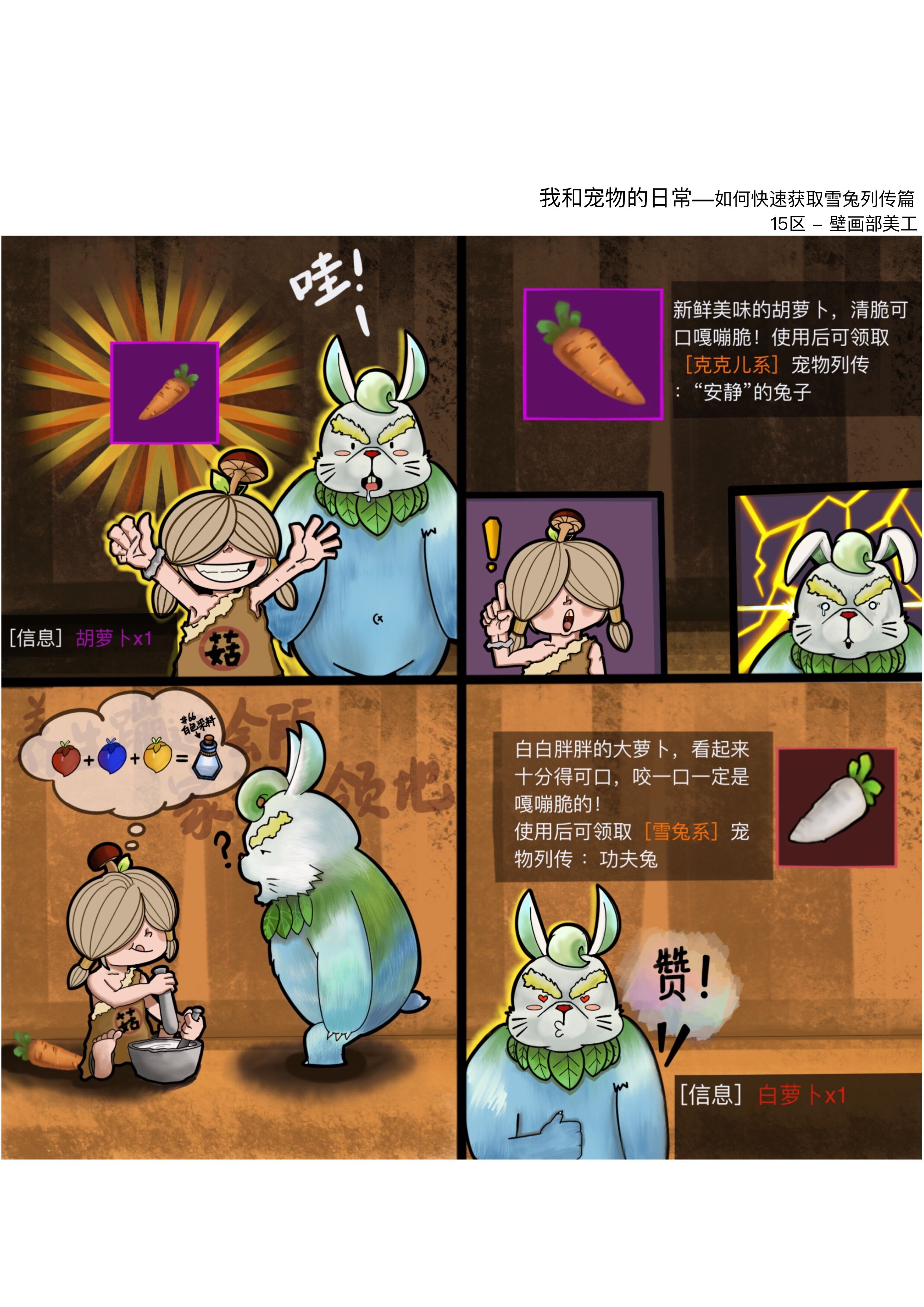 驯兽师获得了一个<胡萝卜>心心念念想着雪兔,可是做完之后才发现跳出来的却是克克尔的魂石,漫画中闹乌龙的驯兽师是不是你呢? 今天的漫画就到这里了,如果你有有趣的梗或者创意记得留言给我们哟!说不定下一次的漫画就有你的创意呢!(??????)?? |