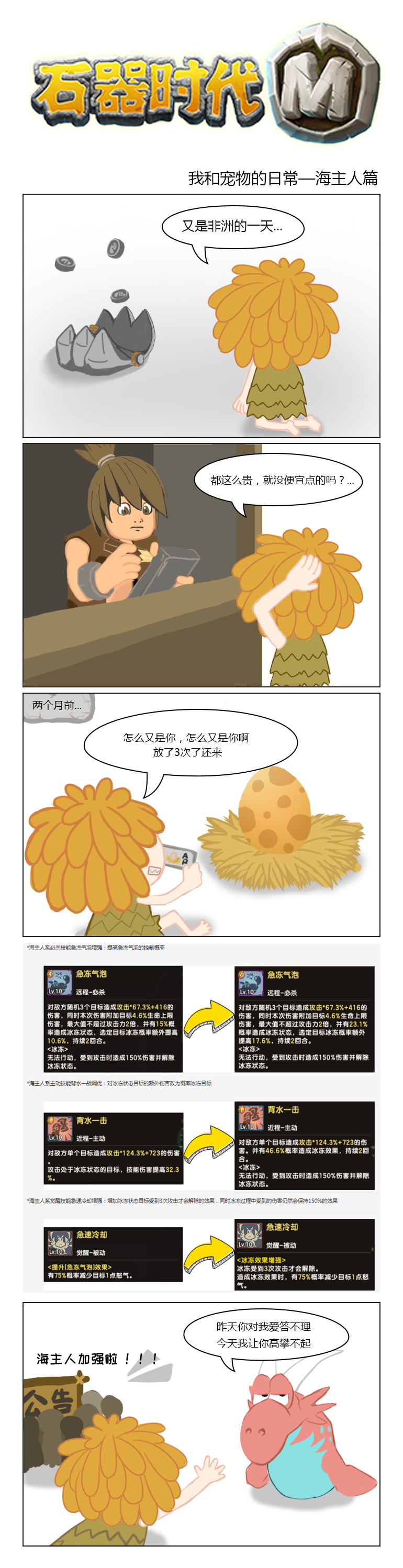 59版本更新后的海主人,真的带来了非常大的改变!今天的漫画告诉我们那个曾经被你放生过很多次的海主人,如果还有重逢的机会,请一定要抓住呀!石器四格漫画今天已经发布到底5期了!各位驯兽师还想看关于石器什么内容的漫画记得给我们留言哟! |