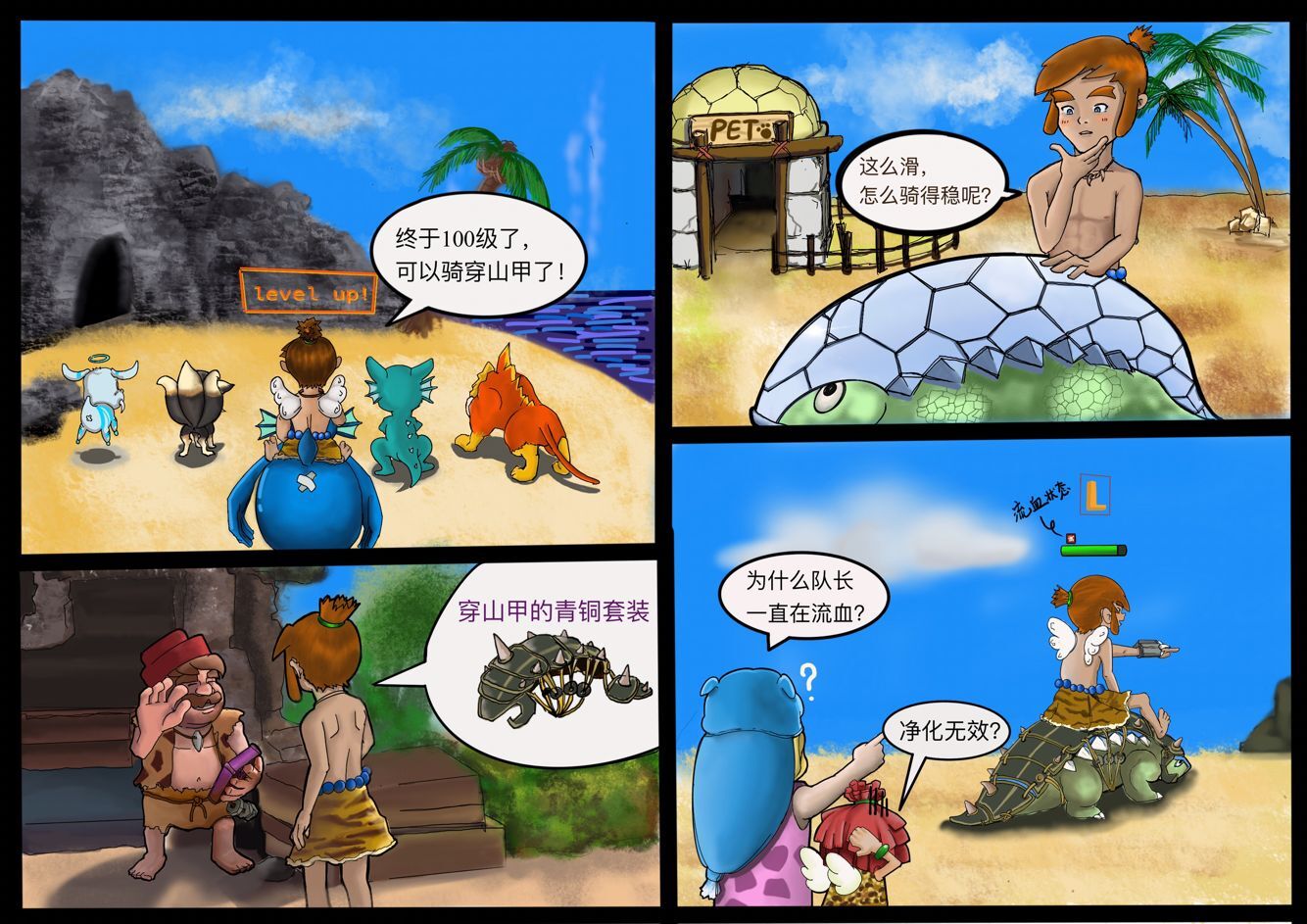今天的四格漫画各位驯兽师有没有看懂呢? 想给穿山甲穿上青铜套装使它穿起来没有那么滑! 那么流血是一定要付出的代价哟! 如果你有什么关于漫画有趣的梗或者创意记得戳原文阅读告诉我们哟!或许下一期的漫画我们就会根据你的创意来制作!(●'?'●) |