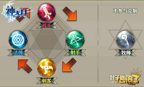 战斗模式中加入了职业克制属性,角色职业分为战士、刺客、射手、法师和牧师五种职业,除了牧师之外四个职业互相克制。在对战中,从敌人头顶的倒三角形就可以辨别克制关系,红色即克制敌人,而蓝色则是被敌人克制。