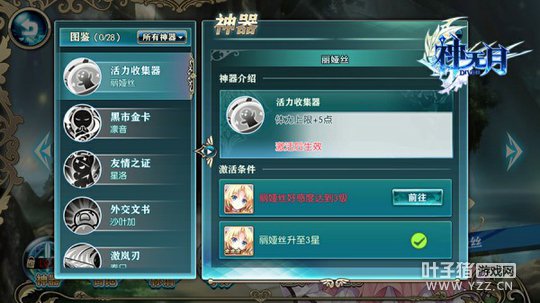 其中神器是比较好解锁的,好感度3级就可以。每个角色的神器将会给团队带来不同程度的提升,鼓励玩家横向发展卡池。