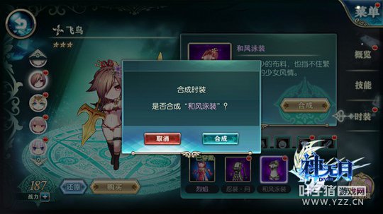 合成成功后,角色在出战时就会穿着新衣服啦。看看飞鸟穿美不美呀。感觉光是小姐姐换装游戏就已经让人欲罢不能~