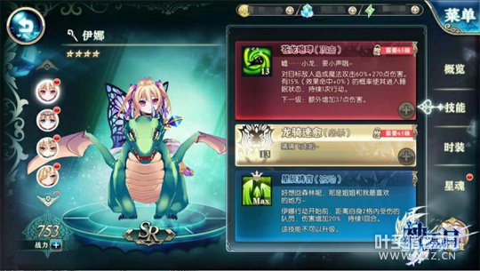 十六夜 精灵妹妹伊娜 控制类型:睡眠 形象颜值:五颗星 控制能力:两颗星 入手难度:四颗星 评价:持续治疗,单体控制。 精灵族的角色定位大多是牧师,这个精灵族的小公主苍龙祭祀伊娜也不例外,作为SR卡角色的伊娜是一个强力的奶妈,可以为队友提供buff保证输出,大招不仅能够立即回血,还能维持两次后续的回复。其攻击技能苍龙咆哮在造成一定伤害的同时有15%+效果命中的概率使目标敌人进入睡眠状态。SR卡入手稍难,前期可用妮娜来充当奶妈的位置。