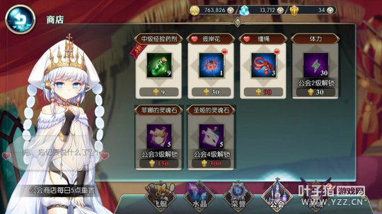 公会商店可以买到各种经验药剂、体力、各种好感度礼物甚至还有角色灵魂石!.随着公会等级的提升,所可以购买的道具也会有所增加噢~~