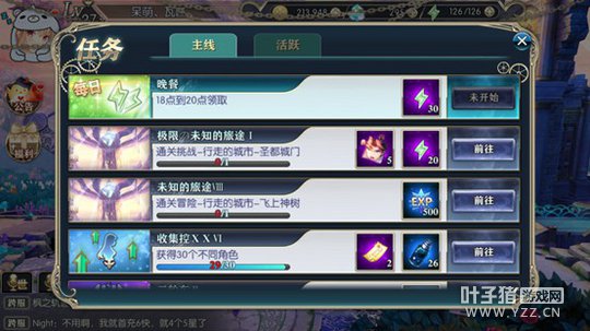 7、活跃任务 活跃任务面板中,看到左边伊娜旁边辣么…多个活跃宝箱了嘛?只要每天活跃值达到100,就是伊娜头顶上那个“特级活跃宝箱”,就能领到对应角色碎片的奖励喔,比如今天的面板角色是伊娜,那么对应的奖励就是伊娜的灵魂石,据说还有小伙伴从活跃宝箱中一次性拿到30个灵魂石?!呐尼,看到心仪角色,就赶紧做任务去吧!