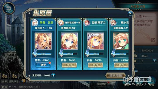 5、 公会集愿屋 集愿屋可以请求指定角色碎片,如果有公会成员愿意满足你的心愿的话……是时候发挥出交际花的实力了!我的愿望一定会实现的!(虽然是交际花,但请不要叫我花花……)。