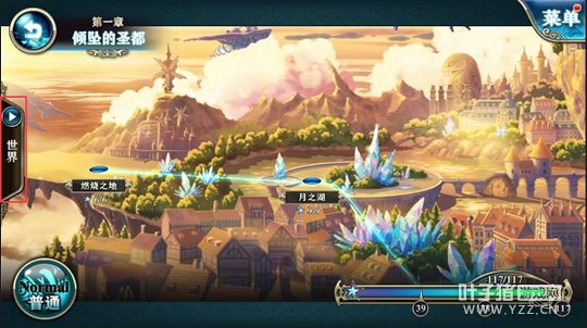 在冒险地图中的左侧边栏找到世界的按钮,点击就可以呼出世界地图的菜单了。