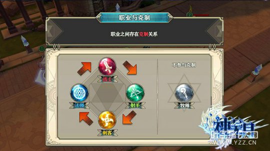 战斗画面 职业有克制!出场阵容抢先机 虽然说卡池的深度和练度可以决定推本的进度,但是在《神无月》里,派出你家最强势的小姐姐却未必能躺赢。职业克制关系是《神无月》最重要的体系之一,除了辅助职业牧师以外,战士法师射手和刺客这四个职业都相互有牵制。在战斗开始前,无脑根据战力选出场阵容恐怕会让小姐姐们很受伤。所以辨别对手的职业然后派出克制职业才是布阵阵容的首选。在游戏里,系统会以红色箭头和蓝色箭头来表现相互关系,其中红色表示为我方克制敌方。