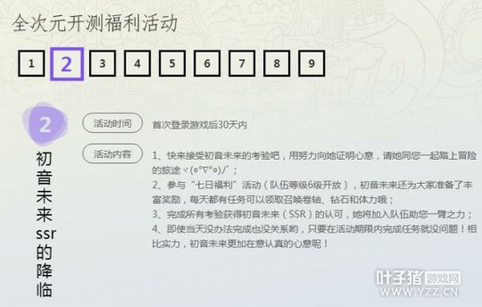 《神无月》初音邀约展示 想知道如何才能将初音小姐姐收入囊中吗?小编这里也为大家奉上了如何获得SSR小姐姐:初音未来的方式。只需要在全次元开测时进入游戏领取“七日福利”的相关任务并在活动期限内完成所有考验,初音小姐姐就会被你的心意所感动并加入你的队伍!
