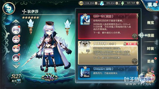 狄伊莎技能面板 首先,普攻技能“破阵一击”。这是狄伊莎的招牌技能,在对敌人造成巨量物伤的同时,还会计算敌方的血量。对于生命值上限越高的敌人造成的伤害也就越多。所以在打公会BOSS等血厚的敌人的时候相当具有优势。 而必杀技“女王特权”则是一个单列的群攻技,最多可以攻击到一条直线上的四名敌人。这个技能相当具有特色,因为她的攻击范围是从目标敌人开始计算的一直线,因此即使目标敌人后方格子没有站人也不影响狄伊莎发起攻击,攻击范围内的直线上所有的敌方单位都会被攻击。这样的攻击力和爆发伤害是不是觉得有点闻风丧胆?