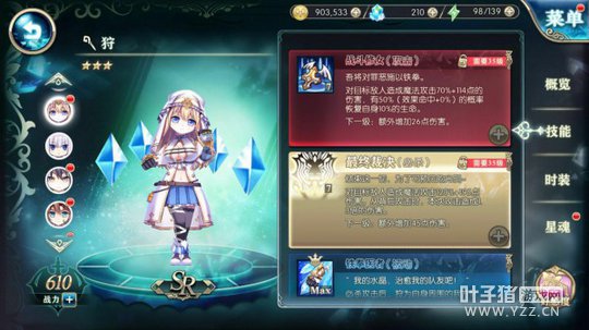 圣姬,作为一只萌萌的小萝莉,不仅卡面精美动人,而且她在战场上的战斗力也非常惊人。几乎适用于任何场合。普攻可以治疗我方一名队友。满血队友则获得等量的护盾。不以魔法攻击作为回复考量的标准,而是以生命,可以想见一个肉盾奶妈在PVP战斗中的恶心程度。星石方面可以考虑以血量为主,魔法攻击为辅来进行堆叠。必杀除了造成伤害之外,还可以令己方最虚弱的队友免死一次,能够在绝境中带来希望。